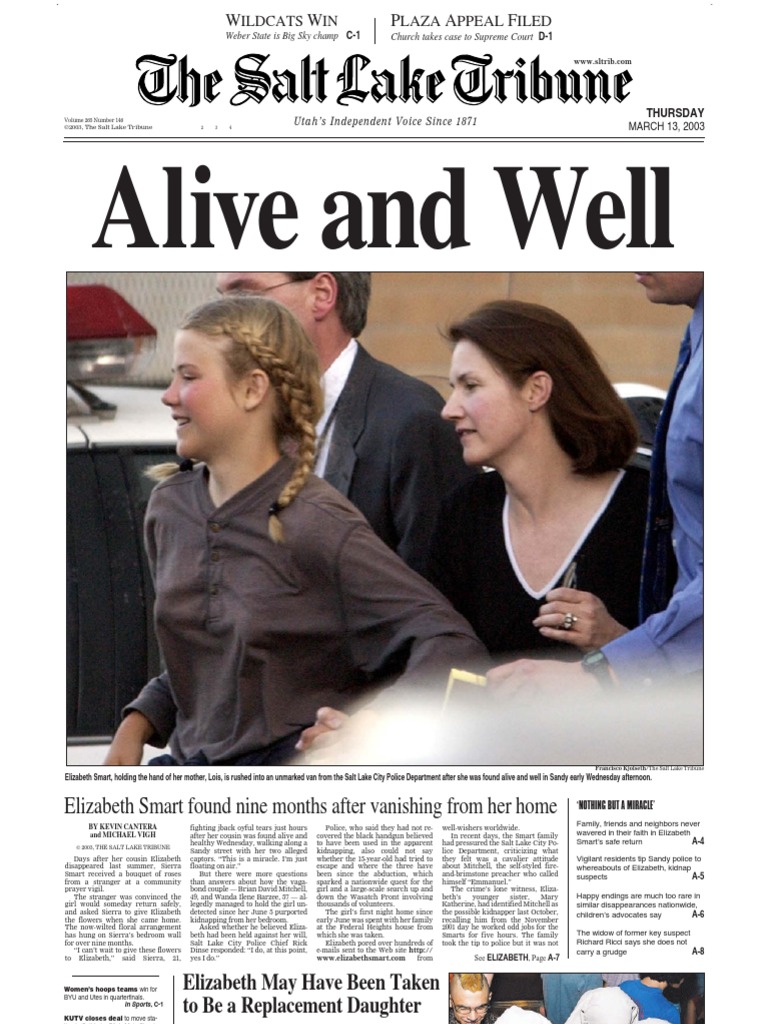 Elizabeth Smart Found Front Page The Salt Lake Tribune Pdf Violence Kidnapping